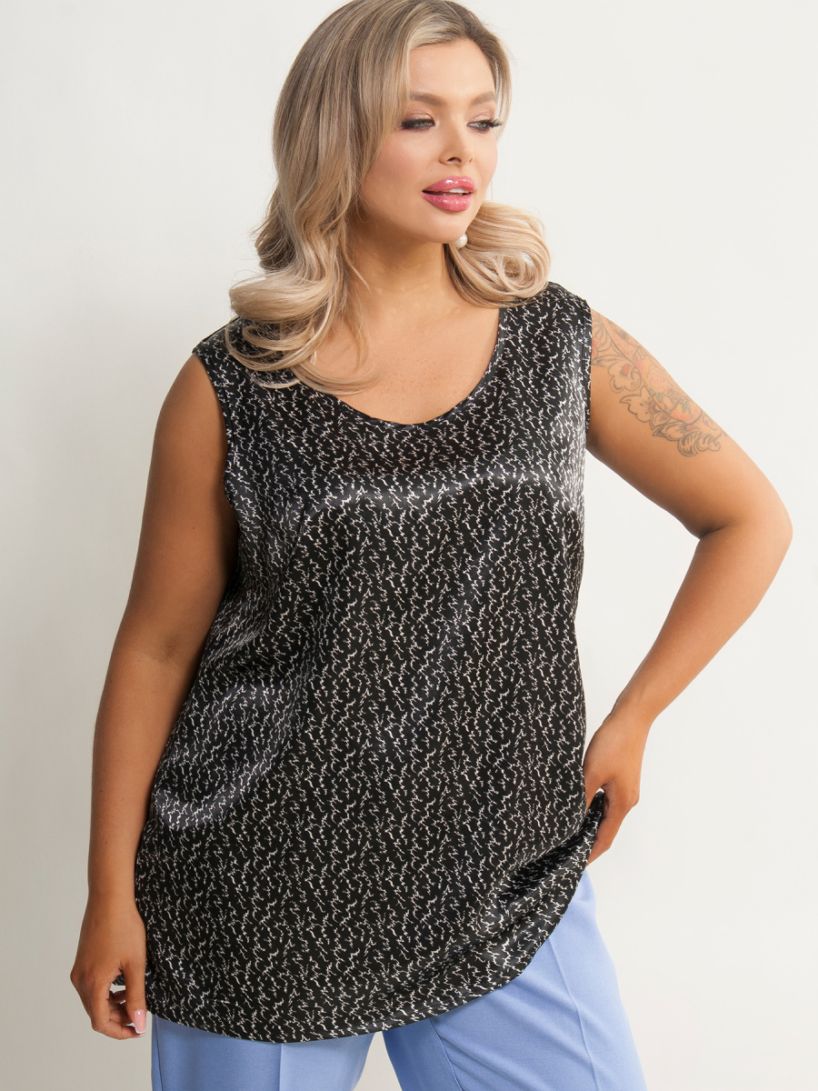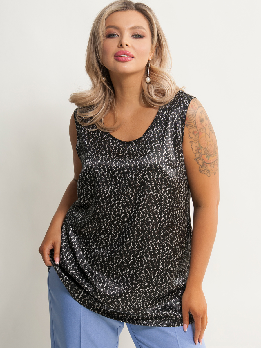 Топ женский прямого силуэта, без рукавов, на широких лямках, выполненный из атласа.