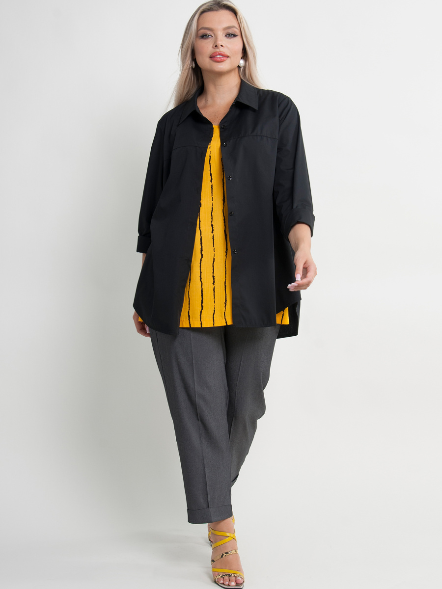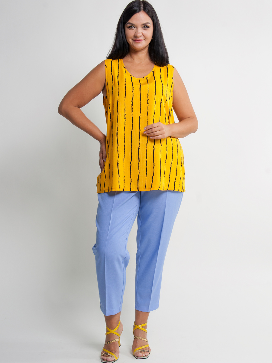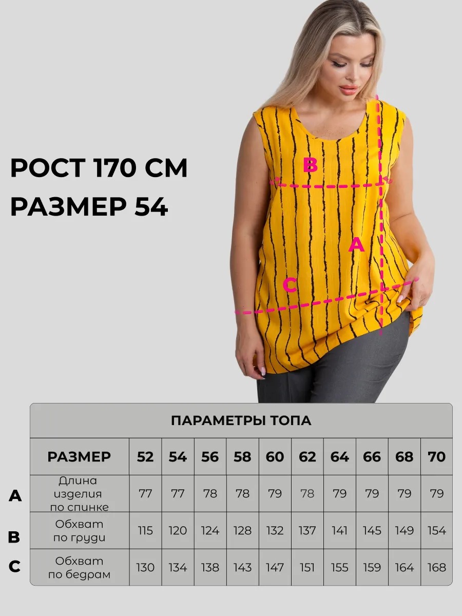 Топ женский прямого силуэта из текстиля. Модель с V-образным вырезом горловины, по бокам разрезы. Без застежки.