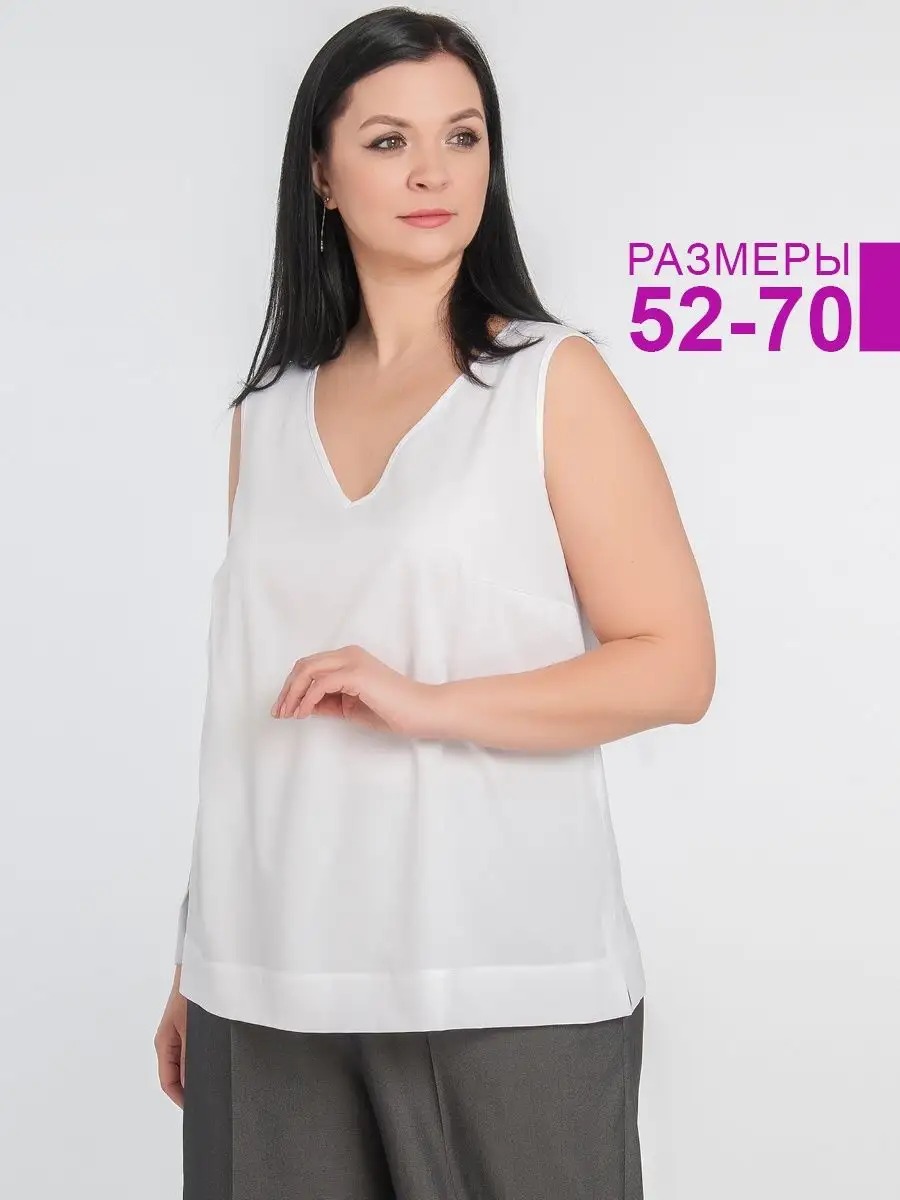 Топ женский прямого силуэта из текстиля. Модель с V-образным вырезом горловины, по бокам разрезы. Без застежки.