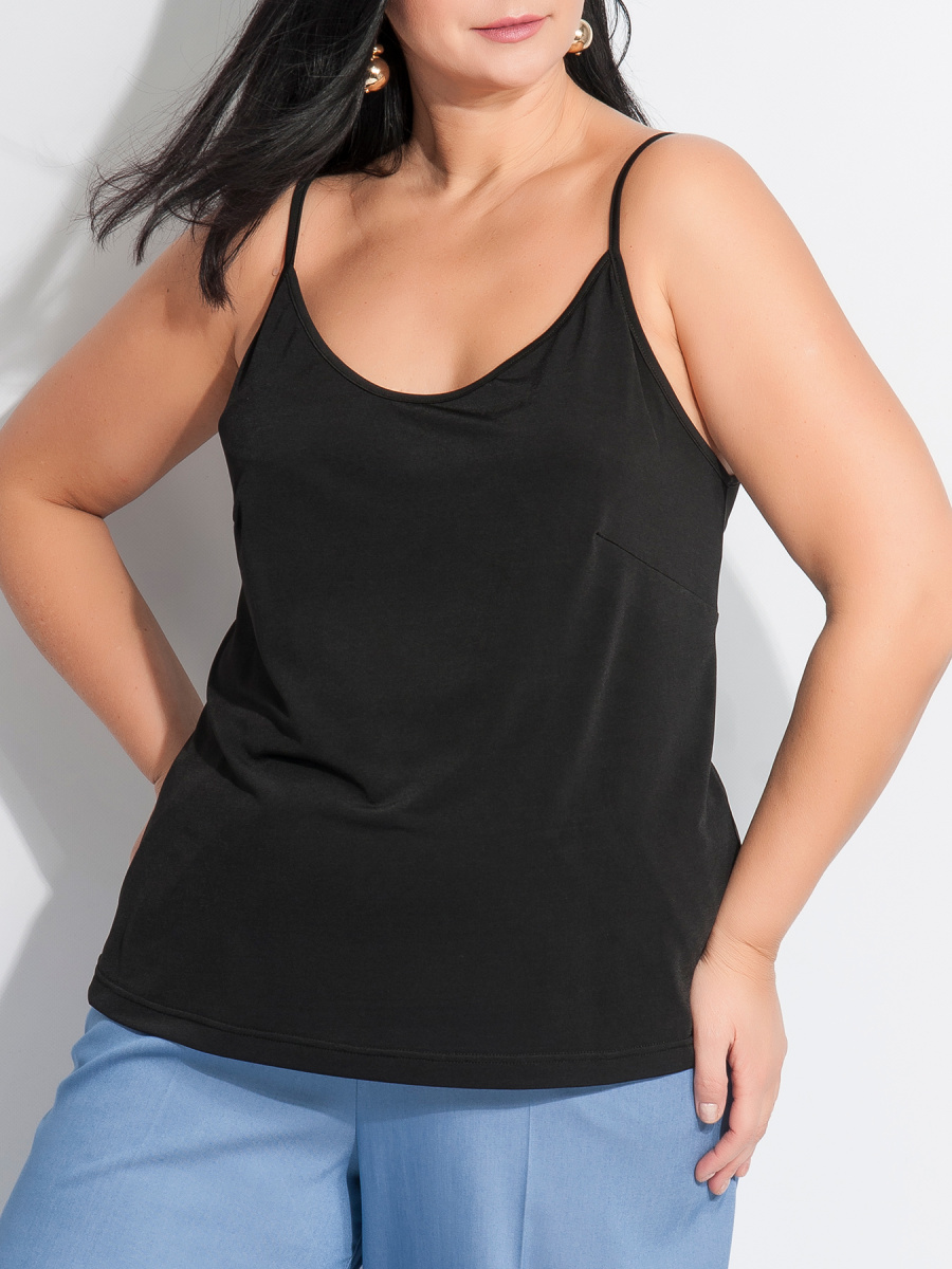 Топ женский прямого силуэта, выполненный из трикотажного полотна "масло". Модель на тонких регулируемых бретелях.