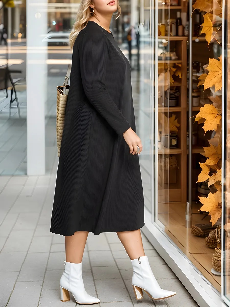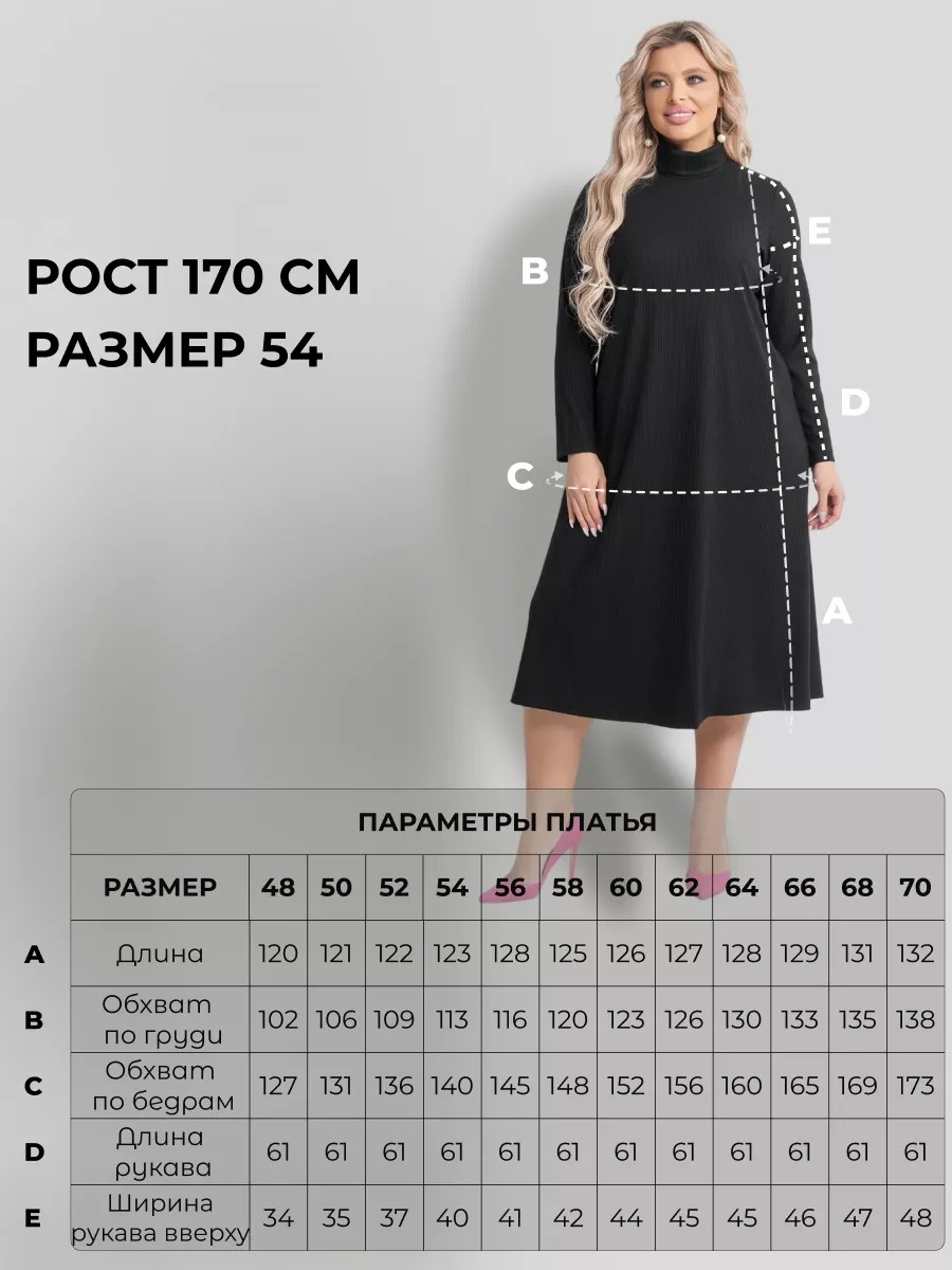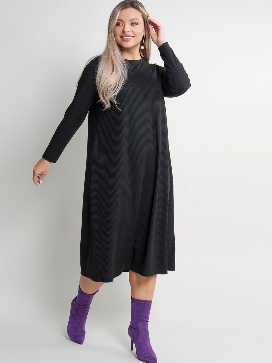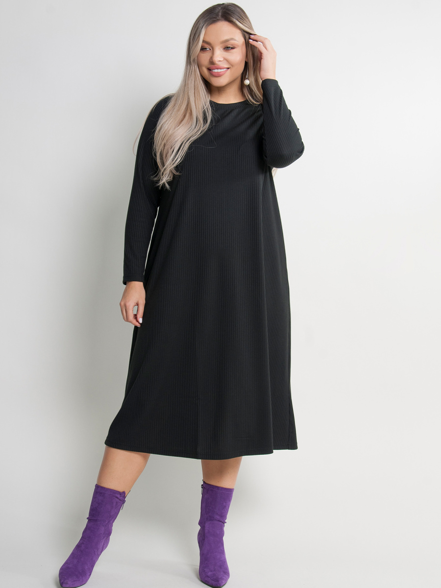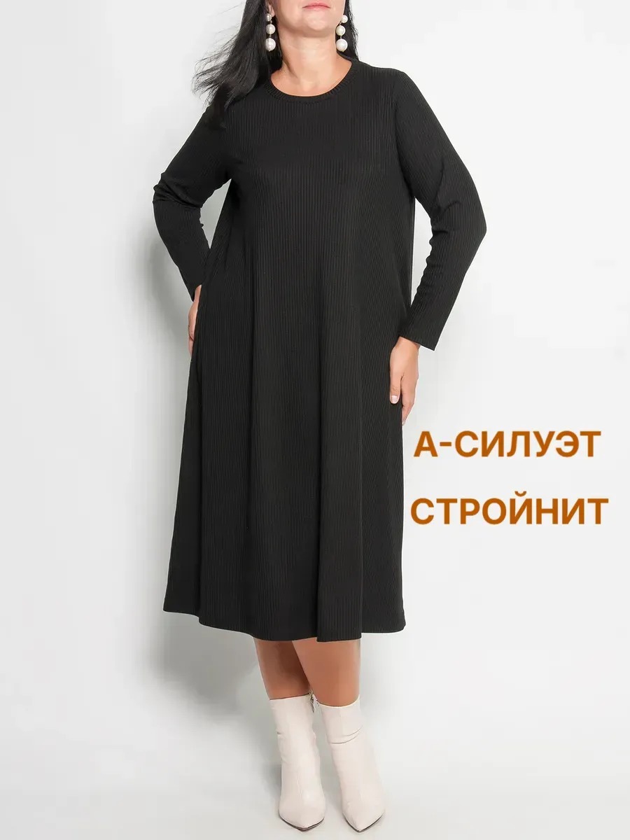 Платье трикотажное А-образного силуэта из вискозы, длиной миди. Модель с длинными рукавами и круглым вырезом горловины. Без застежки. Подойдёт как для работы, так и для повседневной носки. Изделия из вискозы приятные к телу, ткань не скатывается и не электризуется.