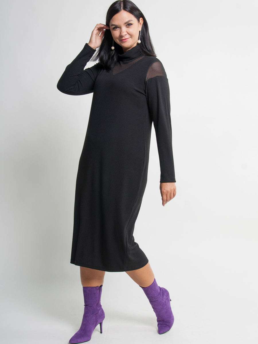 Платье из вискозы с длинными рукавами, воротником стойка и вставками из сетки. Подойдёт как для работы, так и для повседневной носки. Изделия из вискозы приятные к телу, ткань не скатывается и не электризуется.