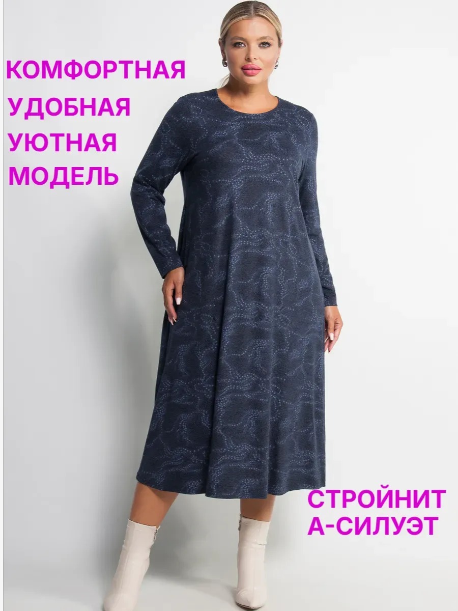 Платье женское А-образного силуэта, длины миди, выполненное из тонкого турецкого трикотажа. Модель с круглым вырезом горловины и длинными втачными рукавами. Без застежки. Платье не сковывает движений, обеспечивая комфорт и удобство.