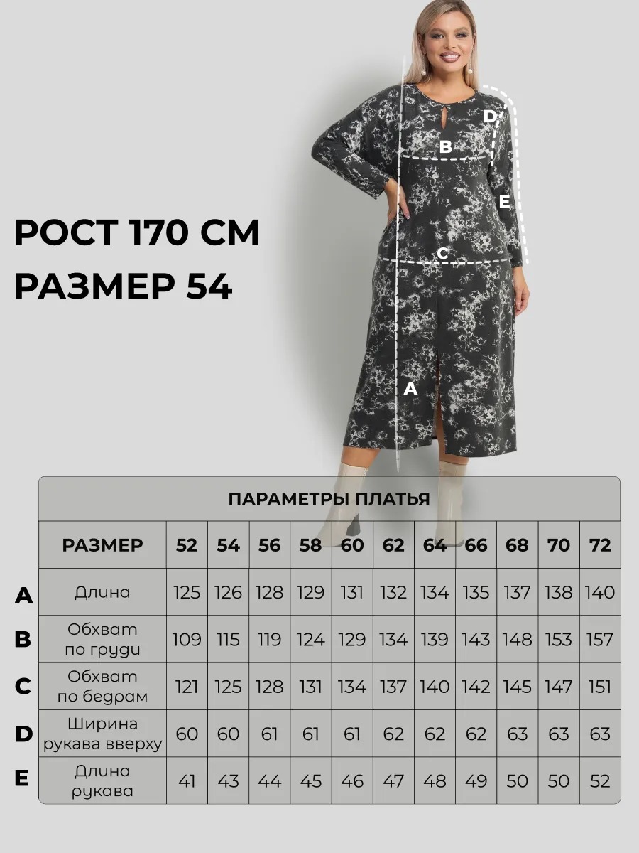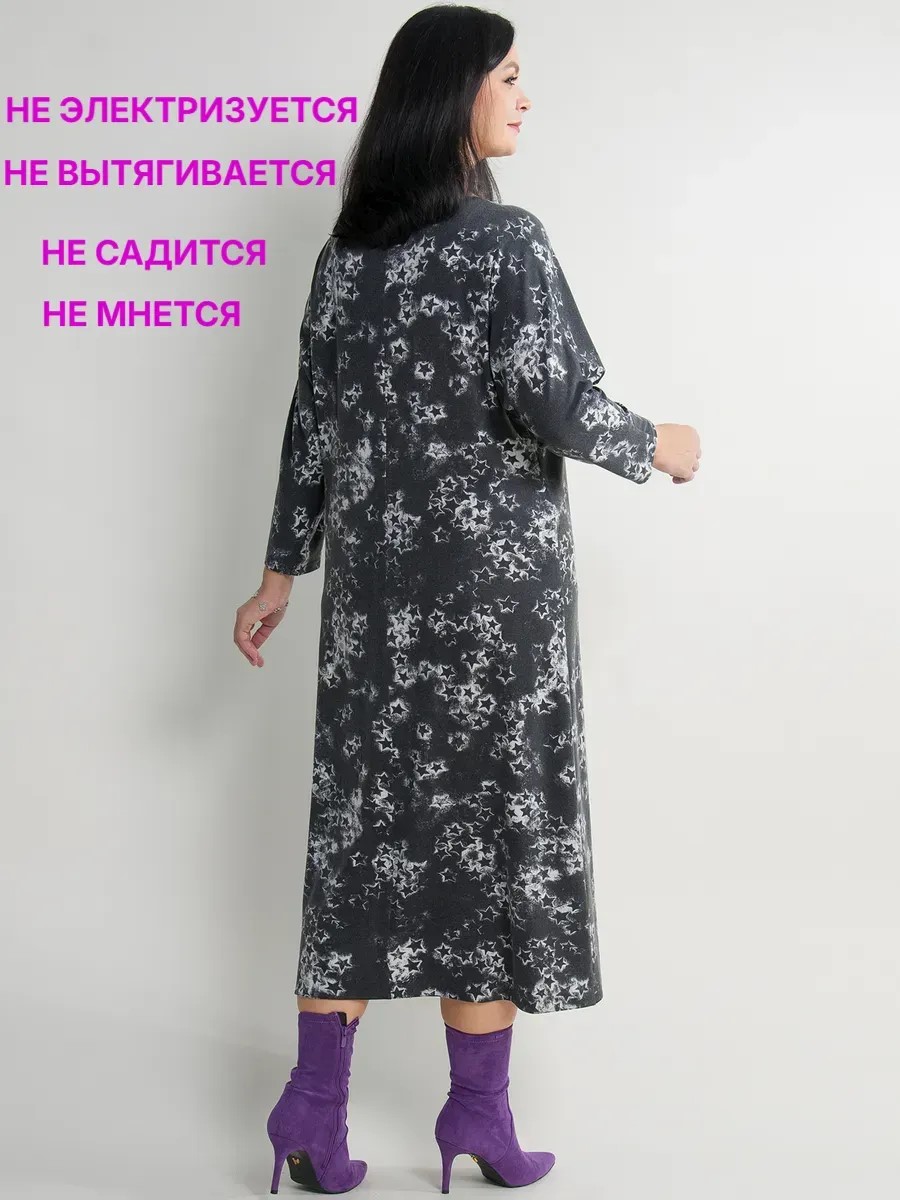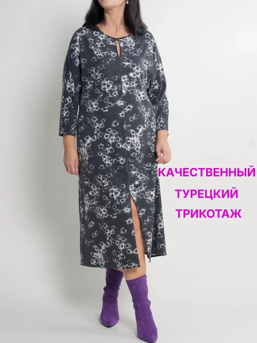 Платье женское А-образного силуэта, длины миди, выполненное из тонкого турецкого трикотажа. Модель с круглым вырезом горловины, декоративным разрезом на груди и втачными рукавами длиной 7/8. По переду платья шов с разрезом. Прекрасный вариант для Вашего гардероба, сочетающий в себе стиль и комфорт.
