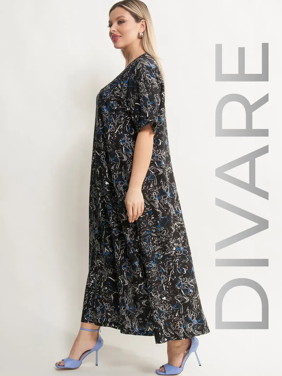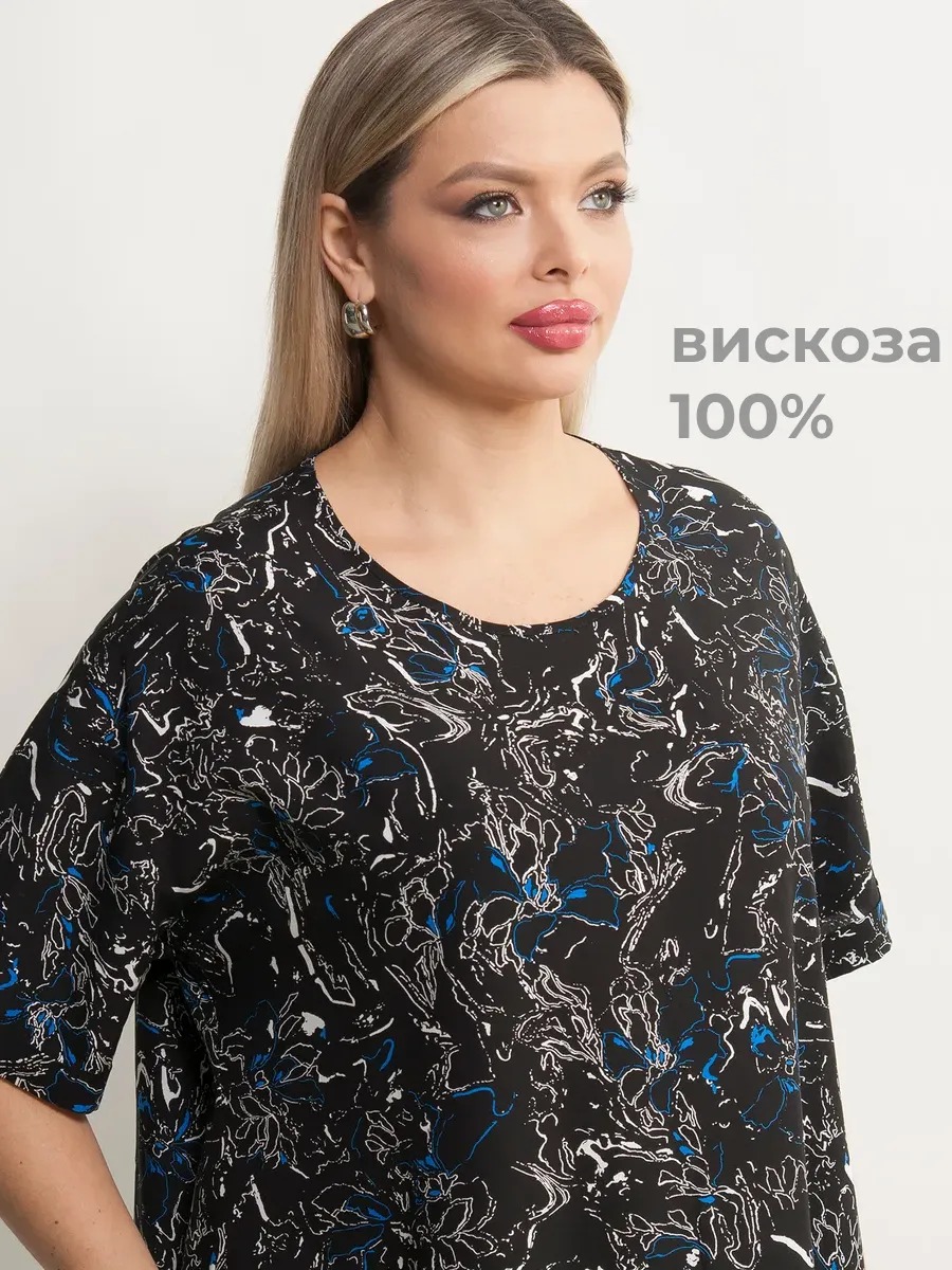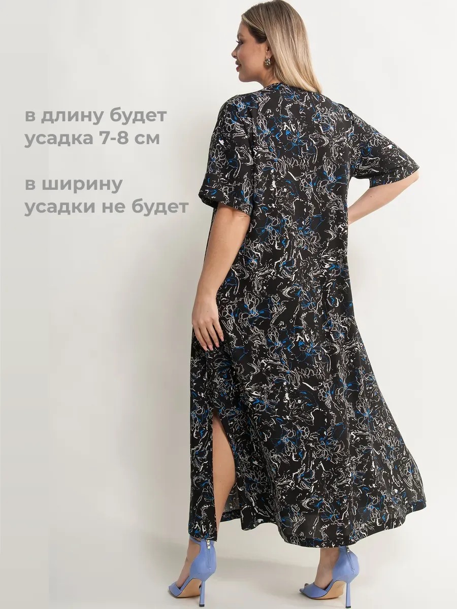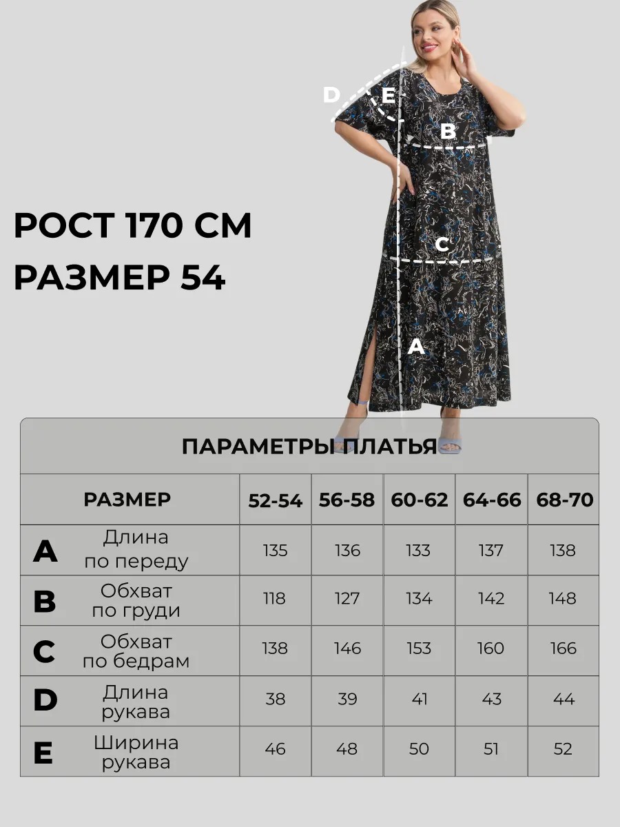 Платье женское А-образного силуэта, выполненное из штапеля. Модель с круглым вырезом горловины и короткими спущенными на пройме рукавами. По бокам разрезы. Универсальное платье станет неотъемлемой частью Вашего гардероба.
