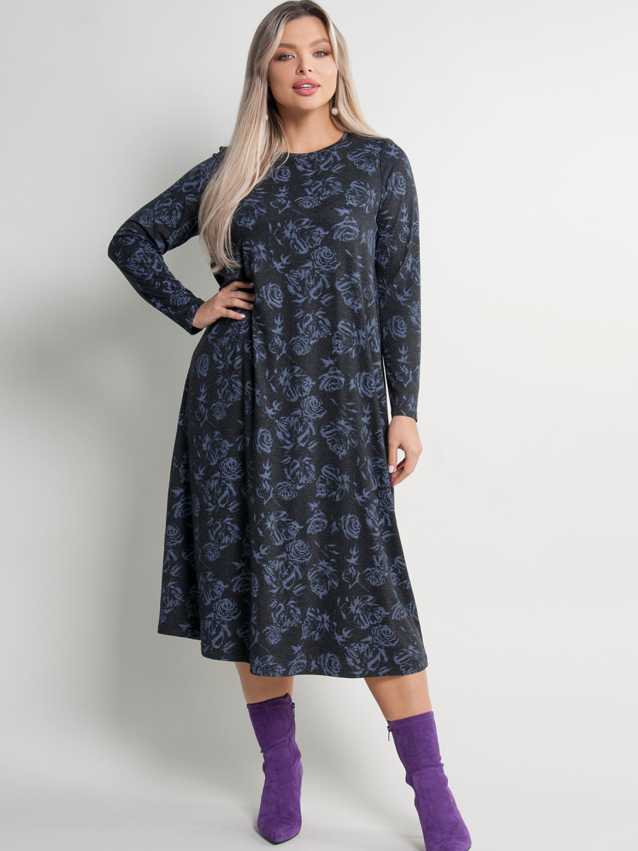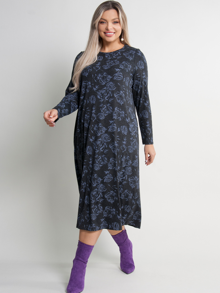 Платье женское А-образного силуэта, длины миди, выполненное из тонкого турецкого трикотажа. Модель с круглым вырезом горловины и длинными втачными рукавами. Без застежки. Платье не сковывает движений, обеспечивая комфорт и удобство.