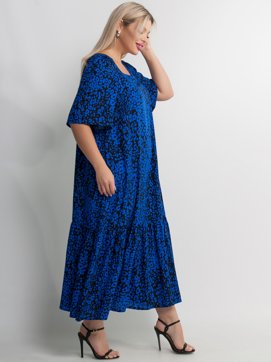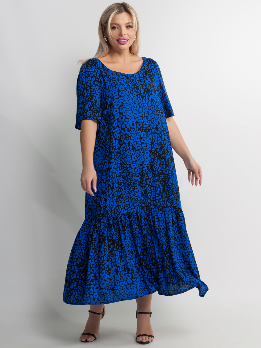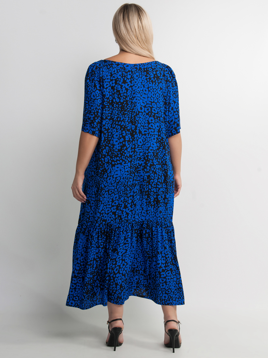 Платье женское А-образного силуэта, с воланом по низу и сборкой на рукавах. Без застёжки. Декор в виде воланов придает платью романтичности и женственности.