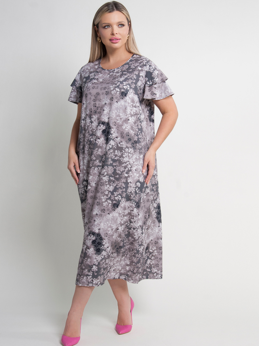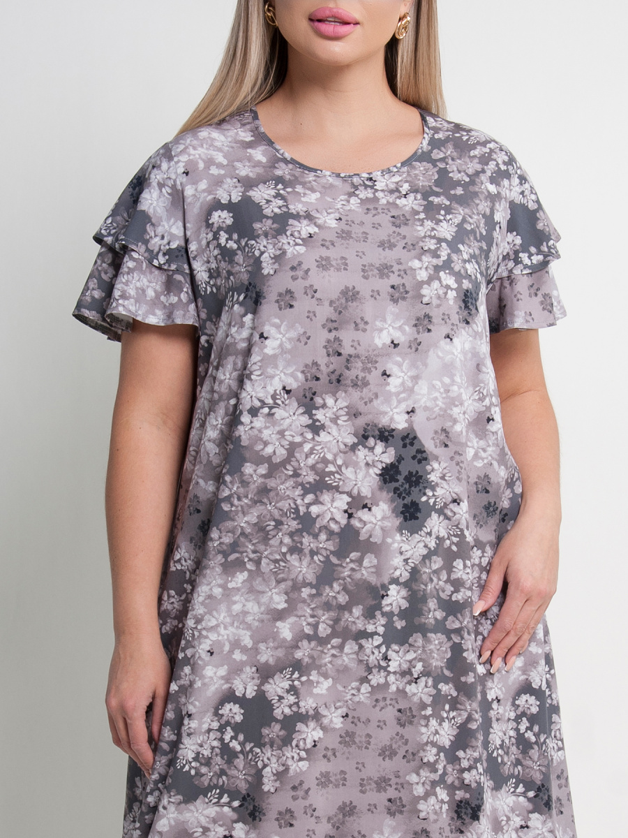 Платье женское А-образного силуэта. Модель с круглым вырезом горловины и короткими рукавами с двойным воланом. Платье отличается простым и лаконичным дизайном, сделайте свой образ легким и стильным!