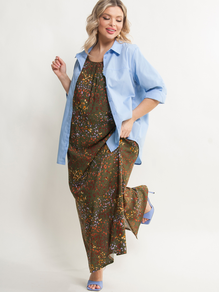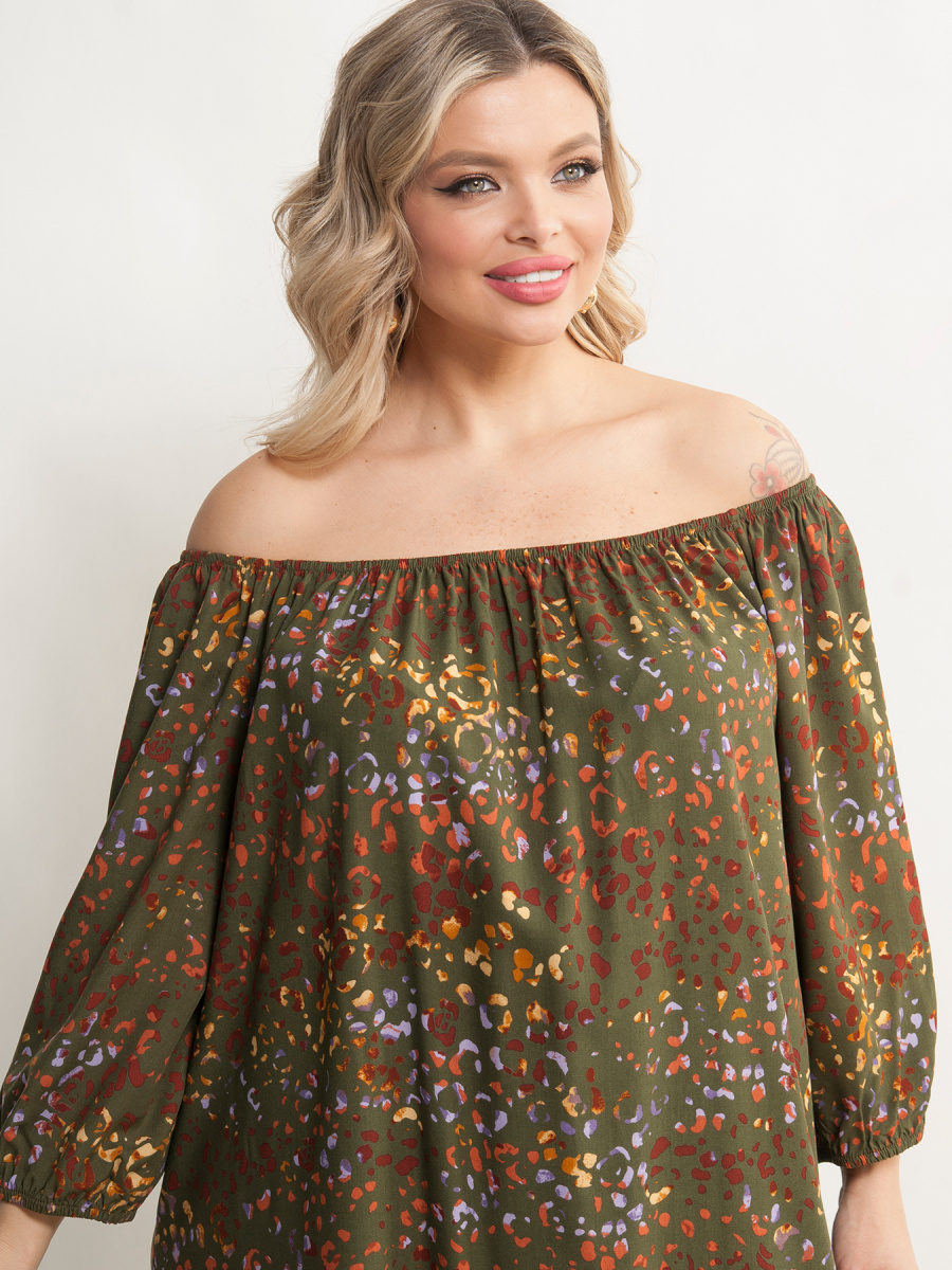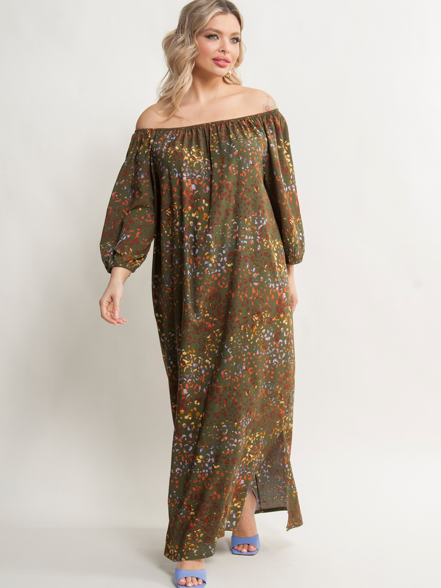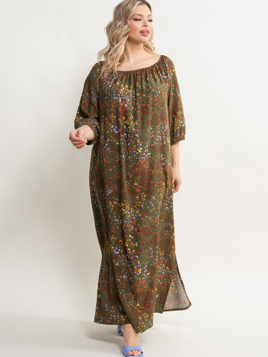 Платье женское А-образного силуэта, выполненное из штапеля. Верх платья на резинке, которая позволяет регулировать вырез от круглого до открытых плеч Рукава 3/4 на резинке. По бокам разрезы. Уникальный дизайн платья придаст Вашему гардеробу особый шарм